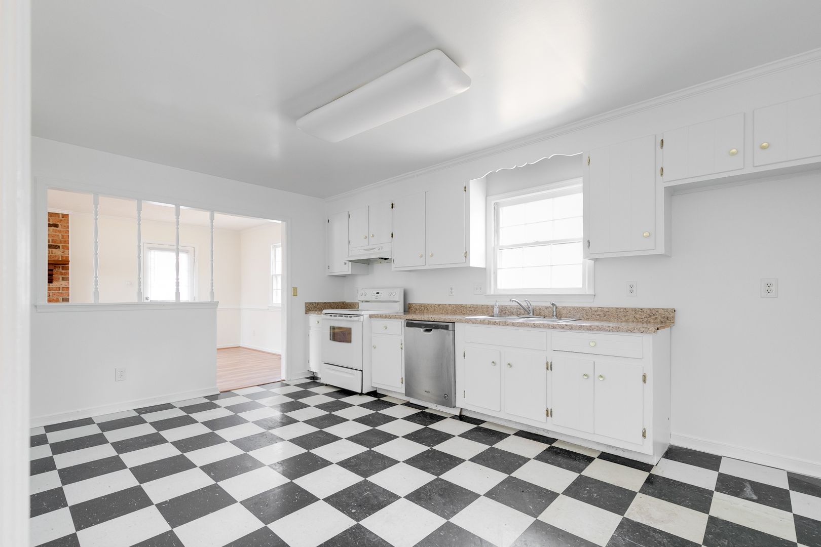 Brick Ranch with 3 Bedrooms, 2 Bathrooms, Kitchen, Living Room, Den with Fireplace, and large back yard - Home has 1425 square feet!